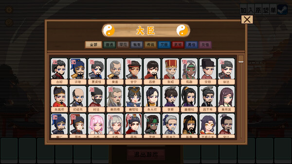 通过每轮游戏不断完善收藏,解锁新的皇帝和大臣。