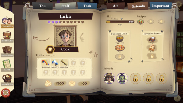 Manage the menus, staff, and rooms of your completely customizable inn.