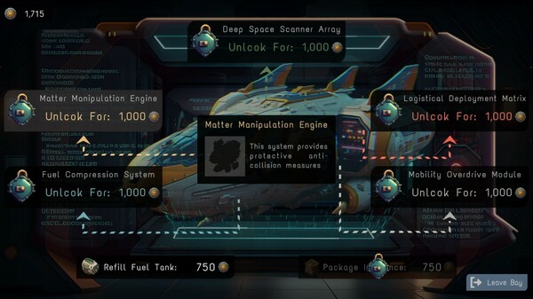 Your craft is a blank canvas for your dreams - if you've got enough Orbs, that is. Be sure to visit the Upgrade Bay to explore all the new and exciting features you can add to it! Expand your Control Panel as you unlock new abilities to help you survive the perilous life of an Orbit Express delivery pilot.