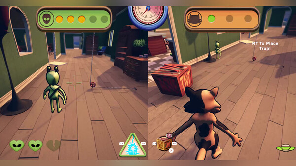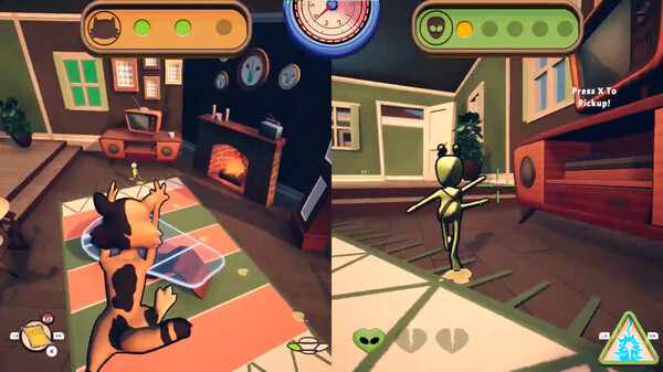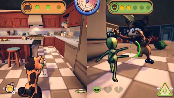 Take on the roles of Cannoli, a crafty housecat, and Green Thing, a stranded alien engineer. As Green Thing, scavenge the house for parts to repair your UFO, or stop Green Thing from doing so as Cannoli!