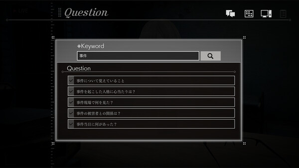 Peek into the sins and memories of five personalities through surveillance cameras──This is an immersive, mystery adventure game that unravels the thoughts of the dark past that lie dormant inside Sofia,a suspect in the murder of a presidential candidate, and uncovers the truth behind the crime.