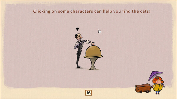 Find the hidden cats! In animated, hand-drawn environments, trigger fun interactions and pay attention to the tiniest details to uncover them. Can you find them all?