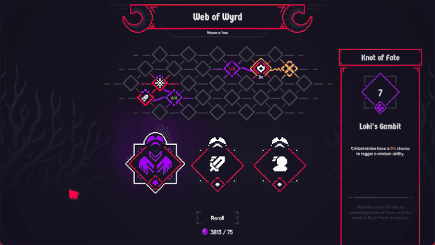 Behold the Web of Wyrd, where the threads of destiny are woven by your own hand. Forge your fate by placing powerful knots into the Web of Wyrd, further enhancing your strength on your path to conquering Asgard.
