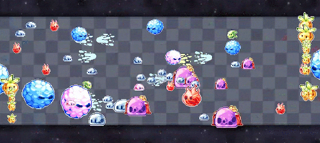 Realtime PvP: defeat your opponent by reaching the right-side of the screen with your slimes! Don't let them reach your side...