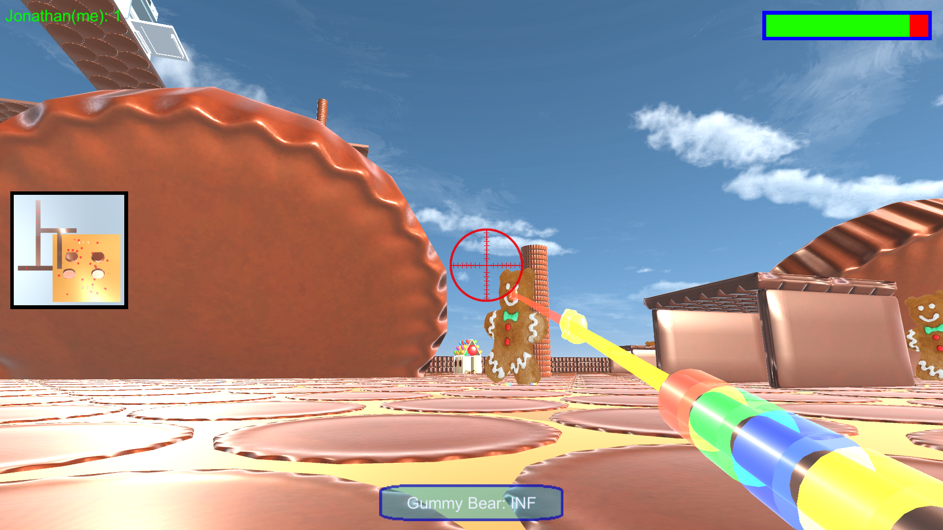 -Silly Weapons: Choose from a variety of candy-based weapons including the Gummy Bear gun, Smore Launcher, Cane gun, Cane Cannon, Candy Corn Launcher and guided candy corn launcher.