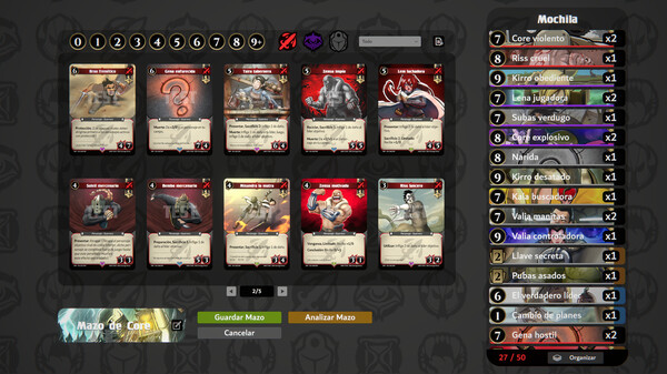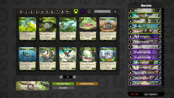 El jugador deberá arrastrar las cartas, eliminarlas y consultar los comandos para sacarle el máximo provecho en las opciones.