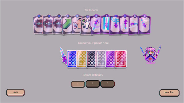 Wield a vibrant array of heroines, each with distinct skills: summon nature’s wrath as the Elf Princess, orchestrate tactical strikes as the Commander, or embrace dark blood magic as the Vampire. Play poker hands—straights, flushes, or full houses—to fuel skill cards, with chips multiplied by hand strength determining your attack power. Adapt to cunning enemies that disrupt your draws or debuff your suits, and seize victory through calculated risks and explosive combos!