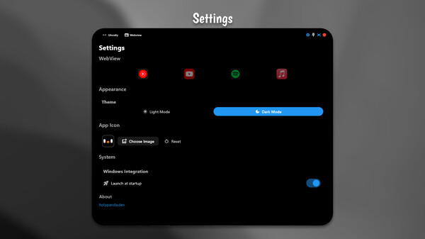 Ghostly offers two theme modes: Light Mode, with a clean, minimalist white interface, and Dark Mode, designed to reduce eye strain. You can also customize the app icon with any image from your system or restore it to the default design with a single click.