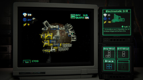 Slam down structures and watch your resource numbers rise or plummet. Every structure you drop can boost intake or push your rig to the brink of collapse. It’s all about fine tuning Energy and Stability to keep your rig operational and your moon in one piece.