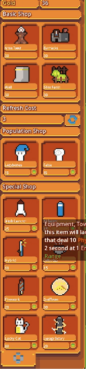 After defeating enemies and obtaining gold coins, you can purchase props with unique features, population, or defense towers in the shop to strengthen yourself.