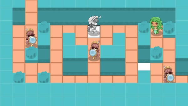 Medusa is sat relaxing in the Temple of Ares when soldiers storm in. Athena, having decided Medusa's curse wasn't severe enough, sent her followers to get her. Use your wits to evade capture and get revenge in this simple but deep puzzle game.