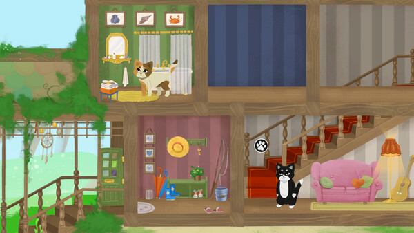 Cats Together is a co-op puzzle adventure game about a couple of cats who have moved into an abandoned house. Stroll side by side around your new neighbourhood, look for stuff to make your place feel cozy and meet new friends while playing with your loved ones!