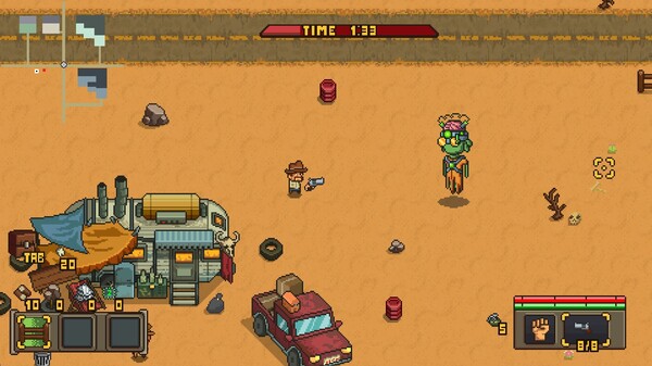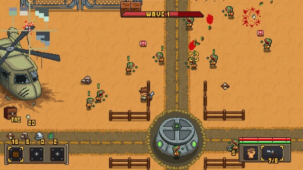 Zombolion is a zombie arena shooter with construction elements. Beat 10 waves of enemies and protect the scientist to get the antivirus.