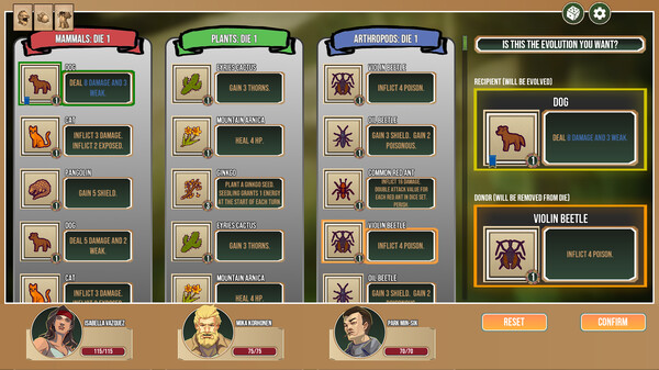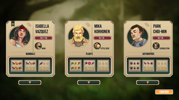 Six classes: Mammals, plants, arthropods, reptiles, aquatic life, microbes - choose your team of three adventurers and discover which combination best suits your playstyle.