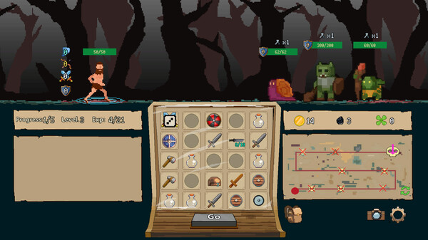 Collect and combine symbols and relics with various abilities. Defeat monsters and bosses along the adventure path.