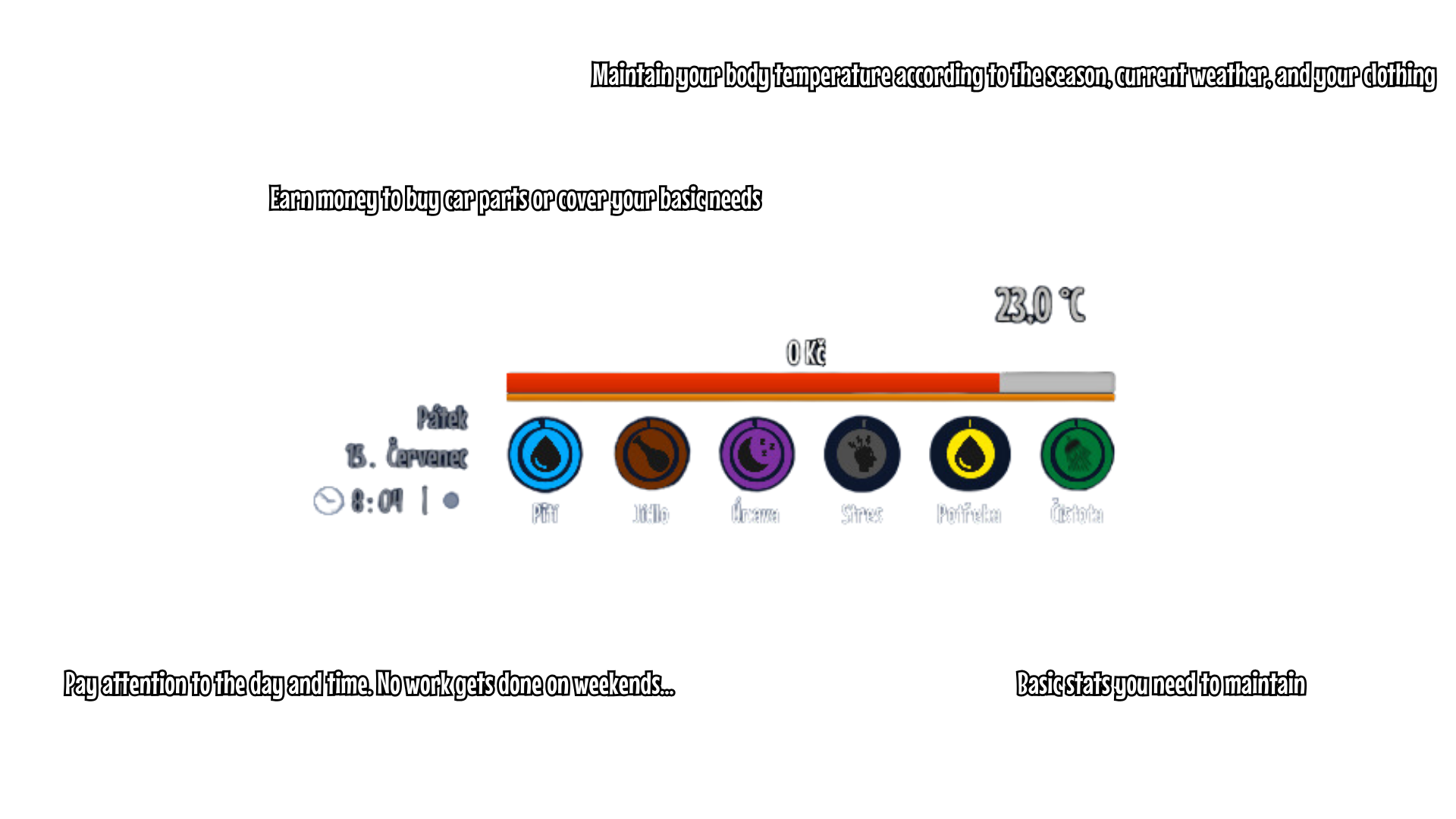 As a player, you’ll also need to take care of yourself to see another day. You’ll need to eat, drink, manage stress, maintain hygiene, and, of course, take care of bodily needs.