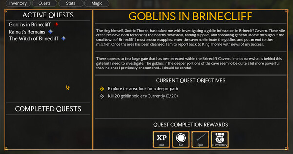 Danger lurks within the dark depths of Morhaven, but if you can conquer it, you can secure yourself some seriously epic loot. The rarity system, providing randomly generated stats relative to the rarity level of the item, will ensure that loot is always exciting and impactful, whether it is to be added to your equipment pool, or to be traded in town for some much-needed spell books to up your casting skills. Different hostile creatures will have different loot tables, so a variety of enemies must be felled to collect everything you may want or need to build your equipment to suit your goals.