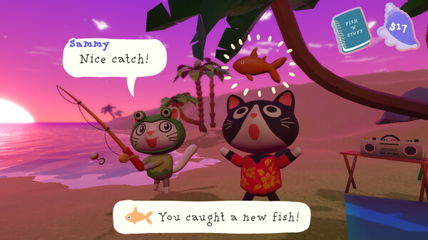 Welcome to Cozy Beach, where you can explore a cozy tropical island with your feline friends!