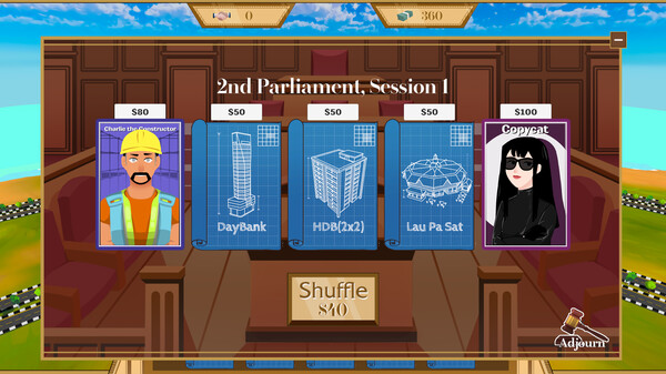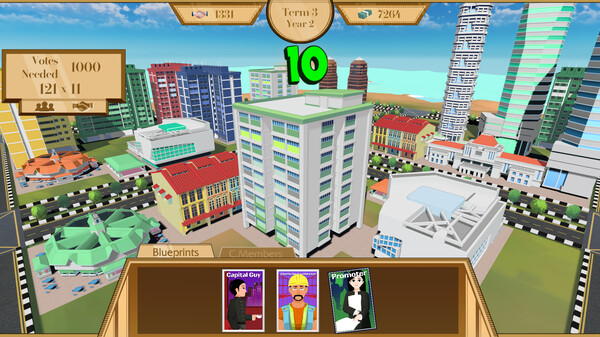 Build and govern a thriving Singapore in this city builder! Plan your city with tactical building placements, Recruit a powerful Cabinet, and secure Building Blueprints during heated parliament sessions. Rally citizen support to ensure re-election and shape your nation's future one term at a time!