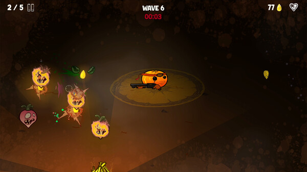 A twin-stick shooter, action roguelite with an 'a-gore-able' citrus twist. Keep your campfire burning, level up your tangerine super-solider and survive waves of undead vegetables.