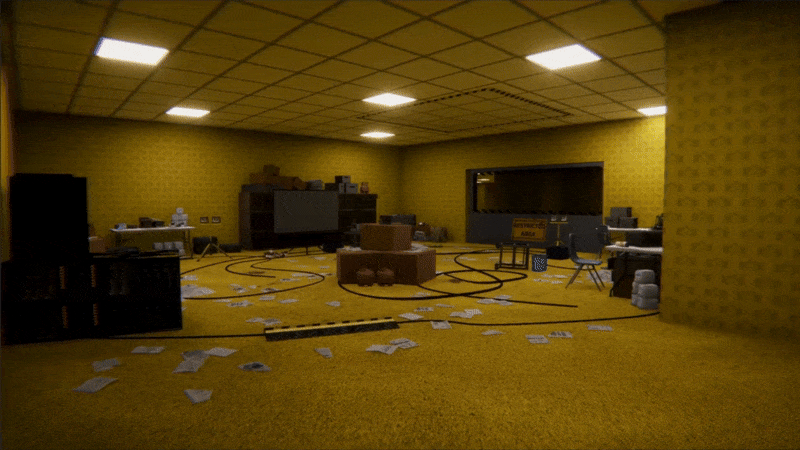 The levels of The Backrooms are a collection of liminal spaces, in a state of transition, where nothing feels real yet disturbingly familiar. These environments resemble places you might recognize like; a silent parking garage, a buzzing office or an endless hotel corridor, but formed into infinite, dreamlike mazes.