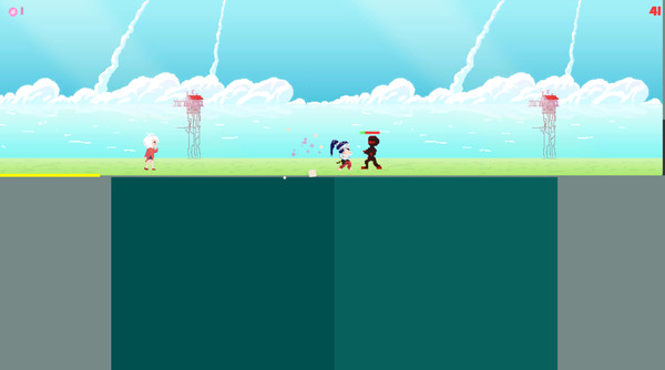 This is a complete one loop game with hand-made pixel arts with scripts. Game is action platformer - a karate kid trying to escape while protecting his girlfriend from ninjas!