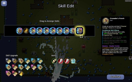 Skills are like using cards, they can create incredible combos. Strategize how to arrange skills for maximum damage.Choose Upgrades and Craft Items