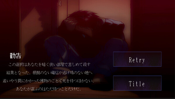 In this game, you will be asked to make choices at every turn. It may be at the door to leave the house, or to accept a gift from a family member. Some of these answers will determine your fate. Try to answer the questions as if you were a young man named Kohito. If you answer with an easy feeling, it may be irreversible. ......