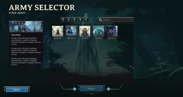 Battle through Tales of Tirunia’s story mode, taking each army in turn as the greater plot of the island’s fate, and the planet’s with it, unfolds. Or hop into PVP and prove your mastery against online opponents. Choose your favorite army from the High Terins and Wild Terins, the accursed Bog Fiends, the strange command-based Hive army, or the endlessly evolving Radiants– find the perfect strategies for your playstyle! New armies and game-modes will be continuously added, so there will always be new ways to play!