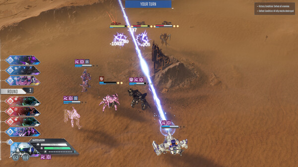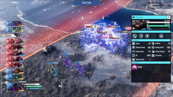 The combat system is turn-based, requiring players to make tactical decisions based on the enemy's lineup and the flow of battle. The order of actions, skill choices, and positioning of mechs all influence the outcome of the battle, making strategic placement and real-time adjustments crucial.
