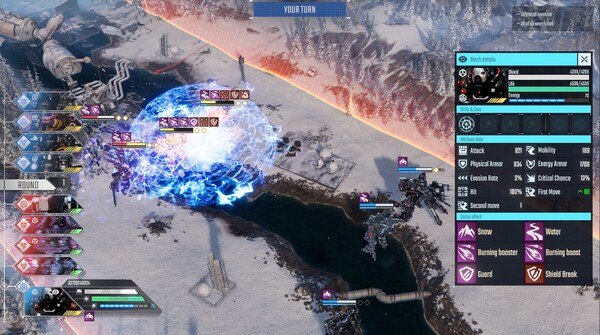 One of the core gameplay features is mech building. Players can select different "Cores" and mech skills to design their ideal team. The game features three elemental types: Frozen, Burn, and Electric. By strategically combining these skills, players can trigger "chemical reactions," such as Frozen's crowd control effects, Burn's damage over time, or Electric's high chain-attack damage.