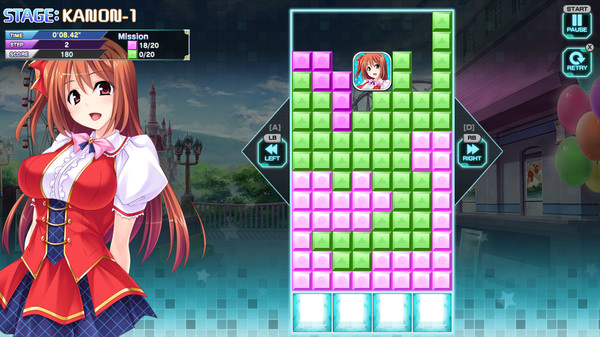 "Pretty Girls Escape" is a puzzle game in which the player must guide the character block(s) to the exit.Players move the character block(s) by erasing blocks of the same color or sliding the stage blocks left and right.