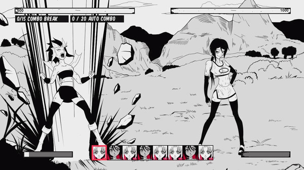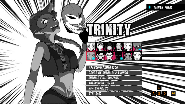 MANGA-style 2d turn-based fighting game, choose 1 character among the 12, with different endings for each one, discover the story by winning with each character