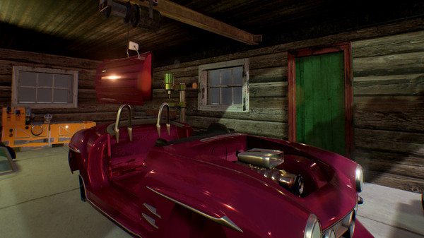 build hotrod in workshop pick up parts with a crain and assemble hotrod compete with your hotrod in a race