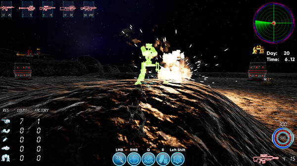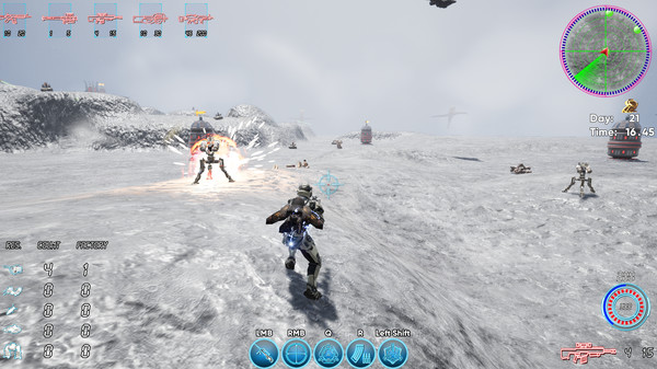 The game has Third person shooter with strategy elements. Capture factory to produce robots and capture enemy bases. Building robots takes place at the bases (Factorys) and consists in the player selecting a number of modules that robots will be built from. Modules can be categorized in 4 types: locomotion, cannon, guns and rockets. There are 2 types of locomotion modules (Bipod, Tracks) and 3 types of weapon modules (Cannon, Missiles and Guns).