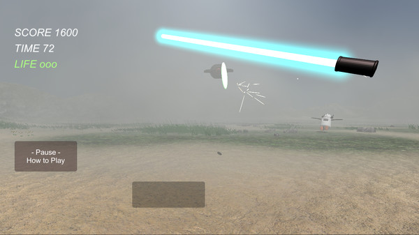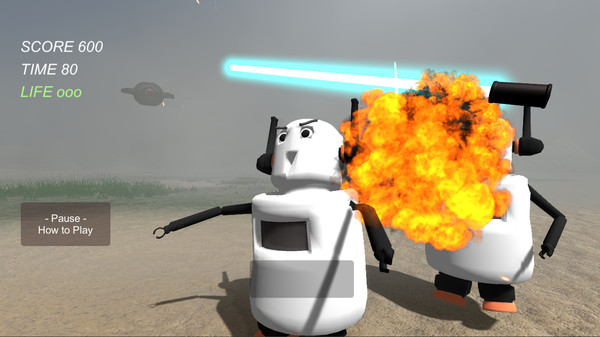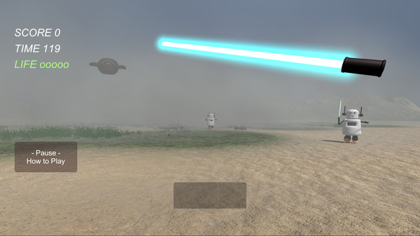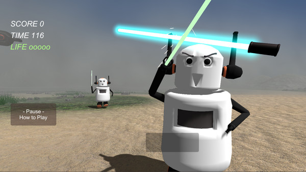 Let's play with "Repairny" AI robot. How to Play Drag scrollbar pointer bottom of window to control player direction. Guard enemy's attack with your weapon light sword. After guarded enemy Repairny's attack, Repairny stopped momentary. It's chance to attack for player. Press space key to attack.