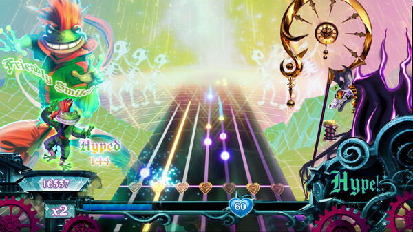 Show your hype in this rhythm battle to keep your soul from the God of Time. How? Capture souls by playing chords to the rhythm of music, fill your hype bar and attack your enemy when you reach your maximum power!