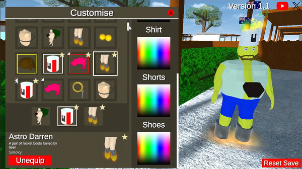 Make your dad look stylish! Create your unique look by customising the colours of your shirt, shoes, skin, shorts, or beard! Also earn shoes, hats, and body accessories while playing Grog to improve your style. If you're lucky, you may even get items that are painted, glowing, or have a special effect!Secrets...