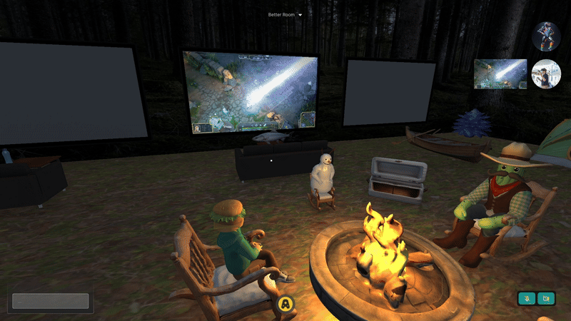 Experience the excitement of the game together through seamless in-room gameplay streaming. Open your friend's gameplay stream to cheer them on and broadcast your stream to a virtual screen so you can all watch together.