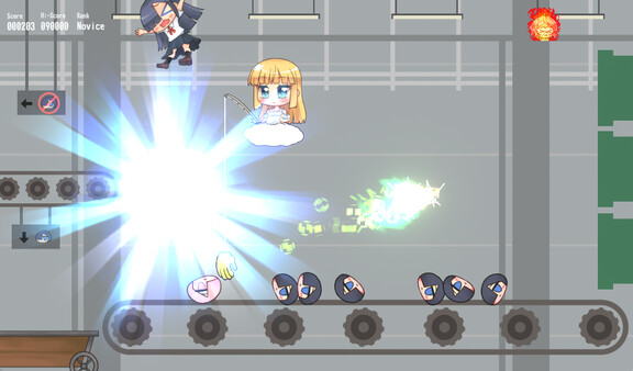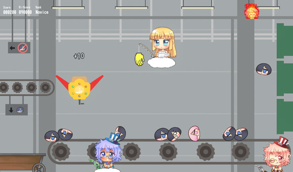 The genre of this game is 2D action puzzle game.The setting is a confectionery factory work line.