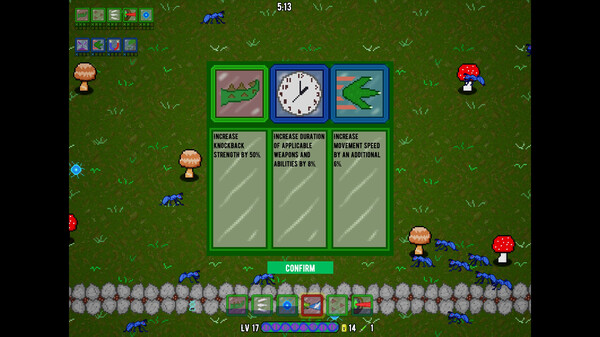 Kaiju Evolution is a top-down action roguelike game where you choose a Kaiju to evolve through four different size stages, from a microscopic creature into a gigantic world-ending threat. Survive for 20 minutes against increasingly larger waves of enemies as you learn new weapons and abilities.