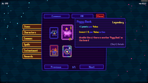 Items are the card that will form your deck. Each item has effects and tags. Buying new items will help you specialize your deck and create stronger synergies.