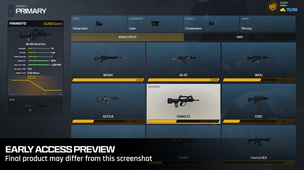 Personalize over 200 weapons with optics, lasers, grips, skins, and other accessories.