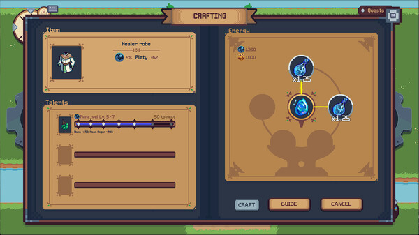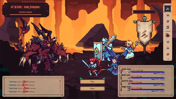 Epic fights with flashy spells, epic attacks, inspired from old JRPGs mixed with modern aethetics. Enjoy an automated turn-by-turn combat system with everything you need to monitor the fight, your party and help them succeed!