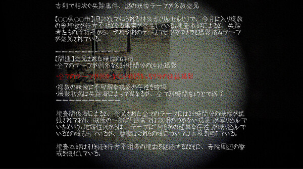 This is a first-person perspective 3D horror adventure game set in a Japanese shrine. Players will explore the infinite layers of the shrine and unravel the story hidden in the place.
