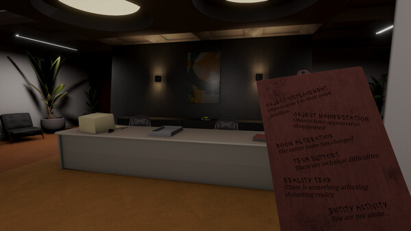 You're working overtime again in your dead-end job, whilst your boss is on vacation. However, strange things are happening throughout the office. Complete your daily work tasks, explore your office, report any anomalies you may find, and you may just find yourself getting a promotion...