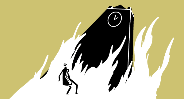 In Black Rapture, No Man labors to complete the intricate mechanisms of a clocktower but is disrupted when a series of arsons break out across the cosmic city.
