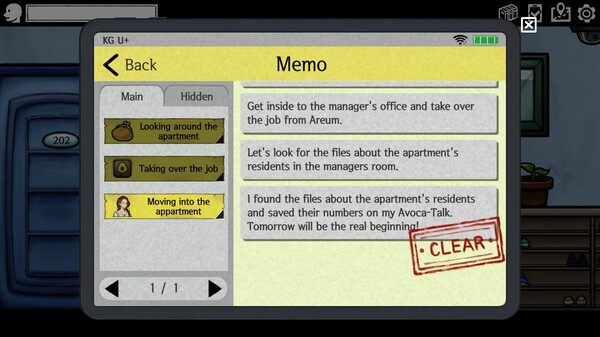 It is essential to search for apartment to perform general affairs duties. The quest to complete the To-Do List is important, but it is also necessary to investigate the cause or environment that led to Seol-a's extreme choice. Go around the apartment and look for clues left by Seol-a or other residents. Maybe you will discover a hidden story.