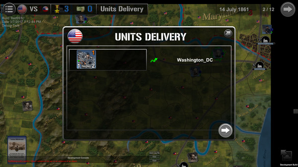 Bull Run 1861 lasts 12 turns each representing about 1 day between the 13th and the 24th of July, 1861. It opposes the Union and the Confederacy over Northern Virginia.Forces of both sides are rather similar, as they are made of freshly recruited infantry.