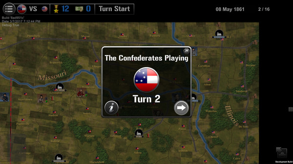 Missouri 1861 sends you to the key border state of Missouri during the crucial months of May to August 1861 at the beginning of the American Civil War. The Union must keep or take all major cities before Rebel reinforcements arrive.